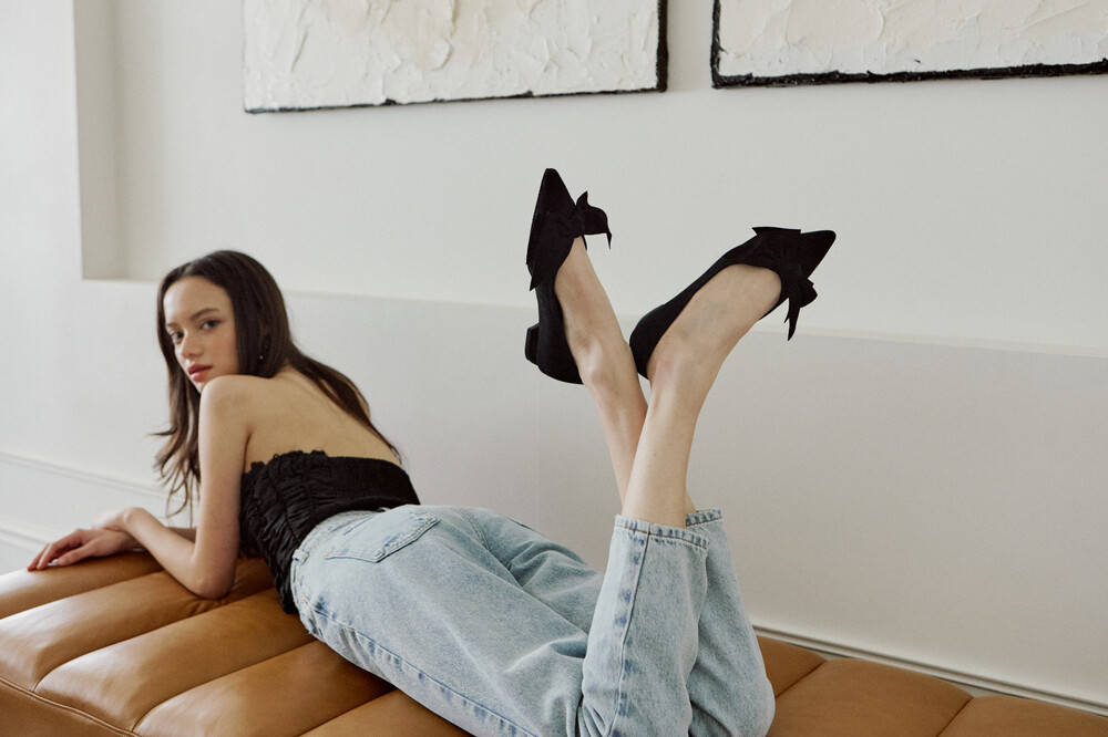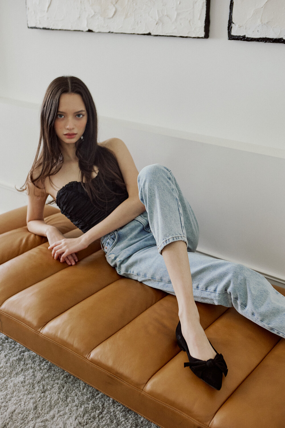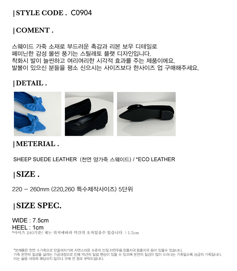 C0904 sheep suede leather ribon flat 1.5cm 스웨이드 리본 플랫