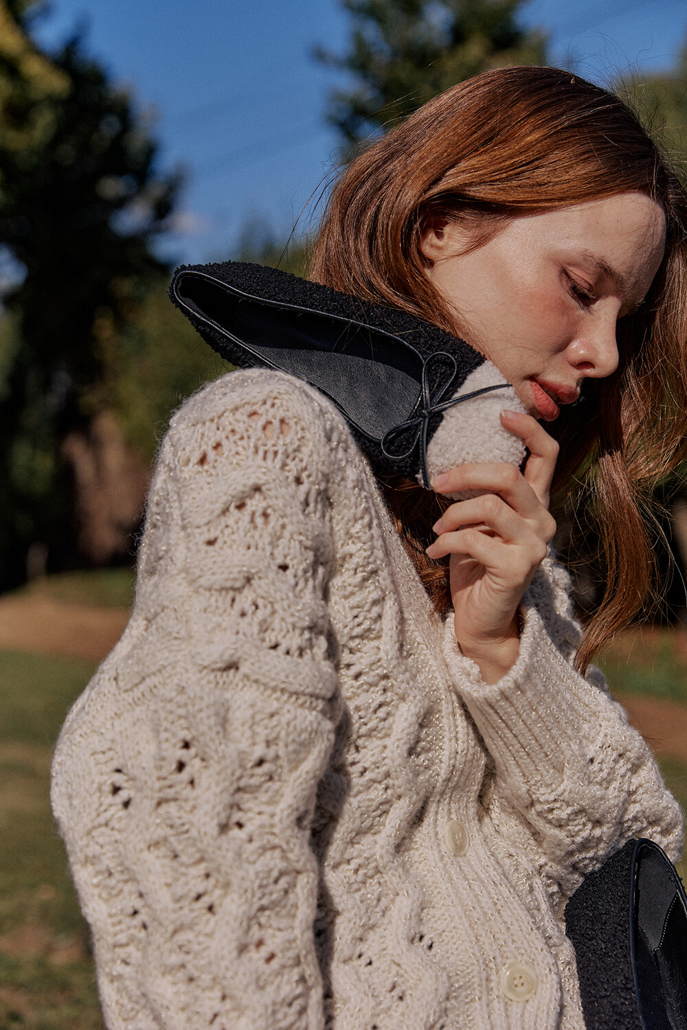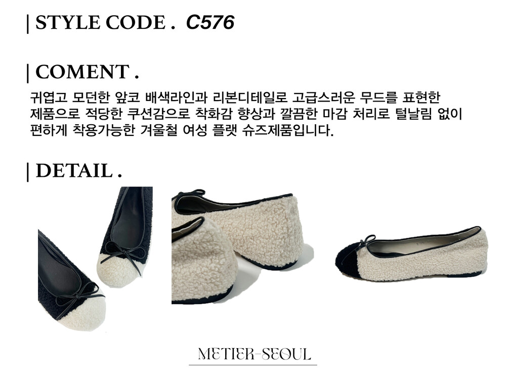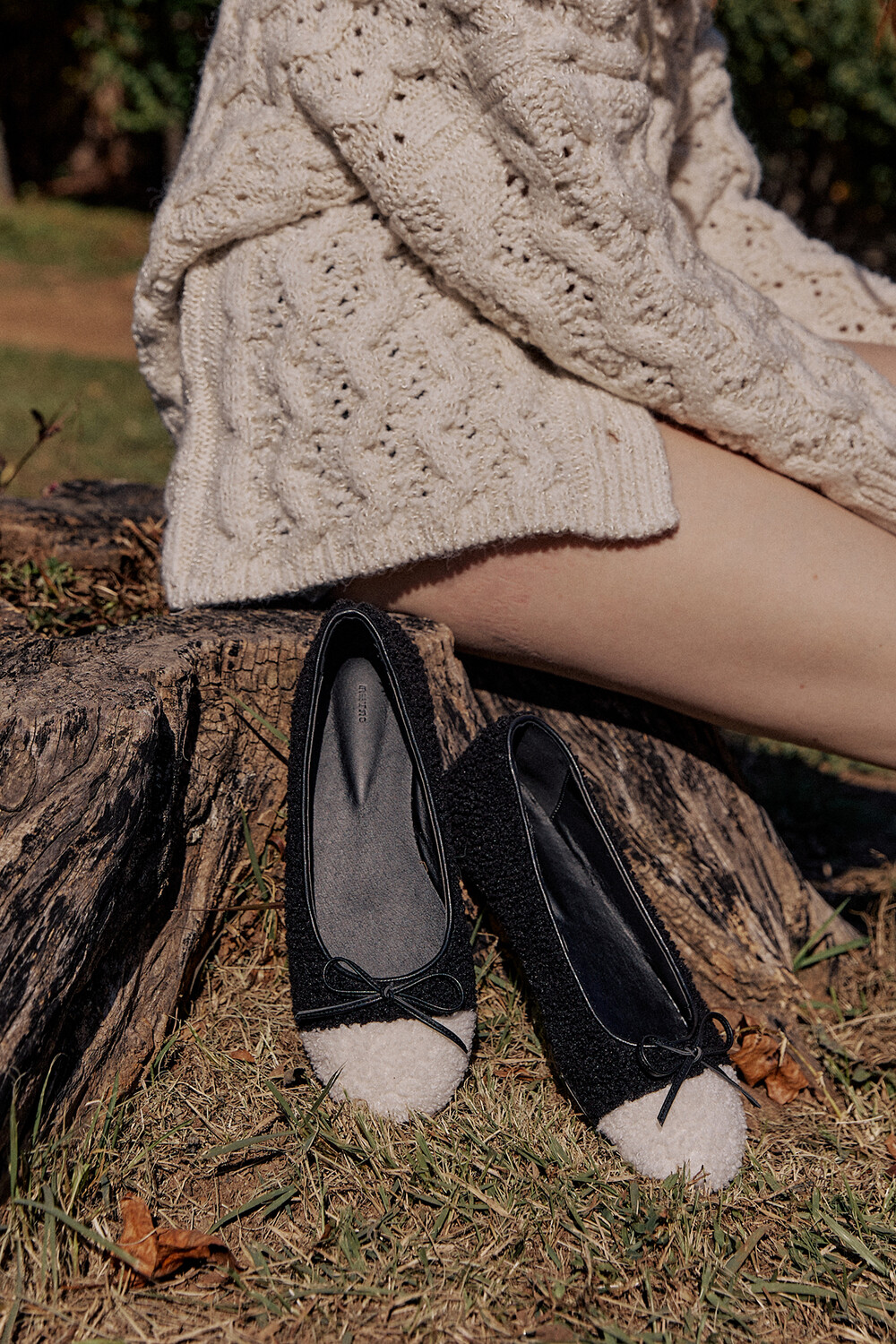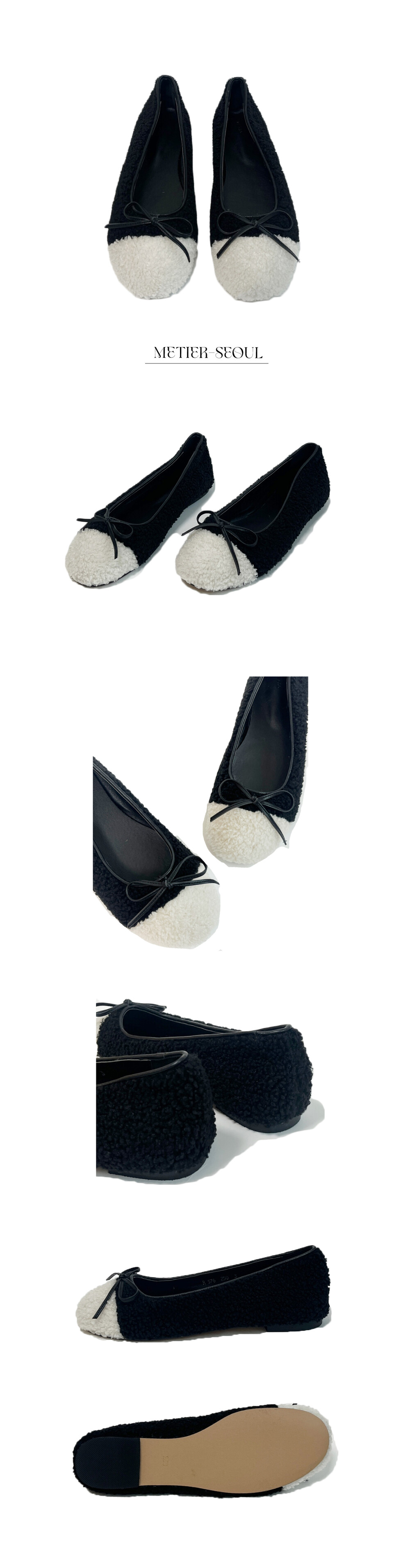 c576 wave ribon faltshoes 웨이브 리본 뽀글이 배색 플랫슈즈 - BK