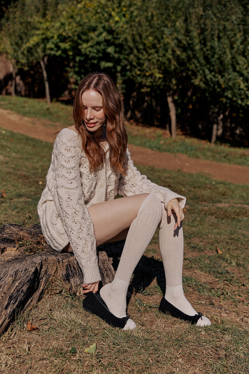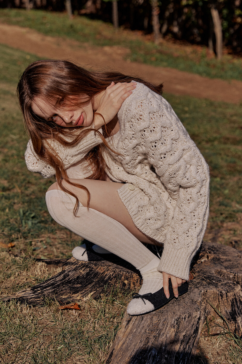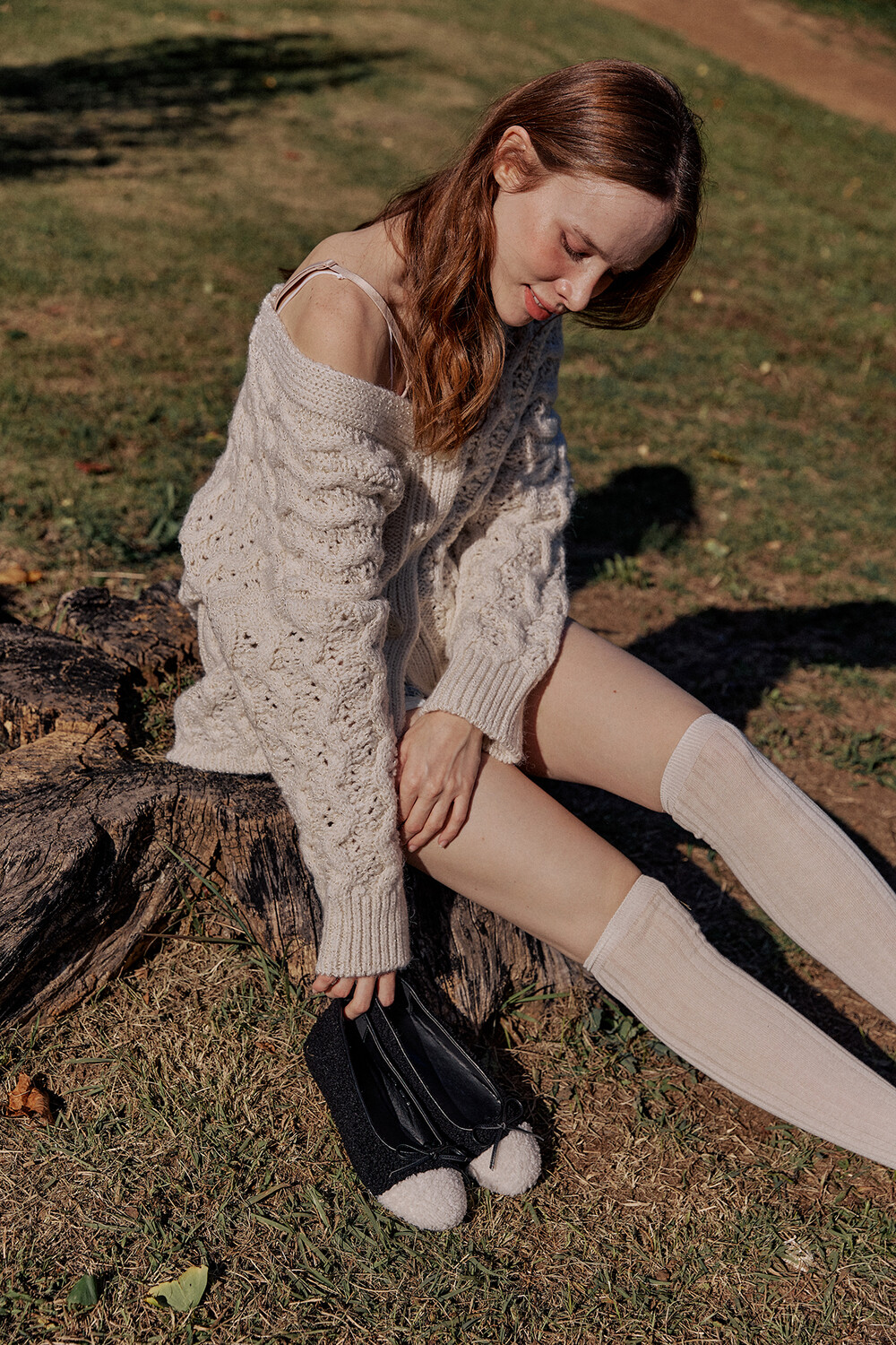 c576 wave ribon faltshoes 웨이브 리본 뽀글이 배색 플랫슈즈 - BK