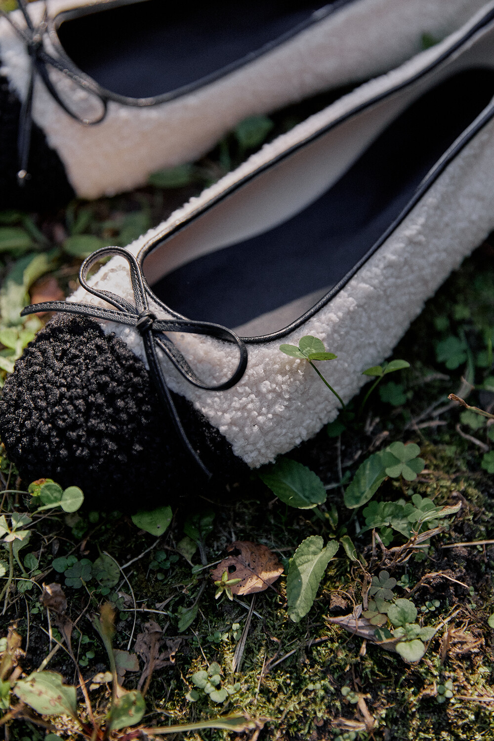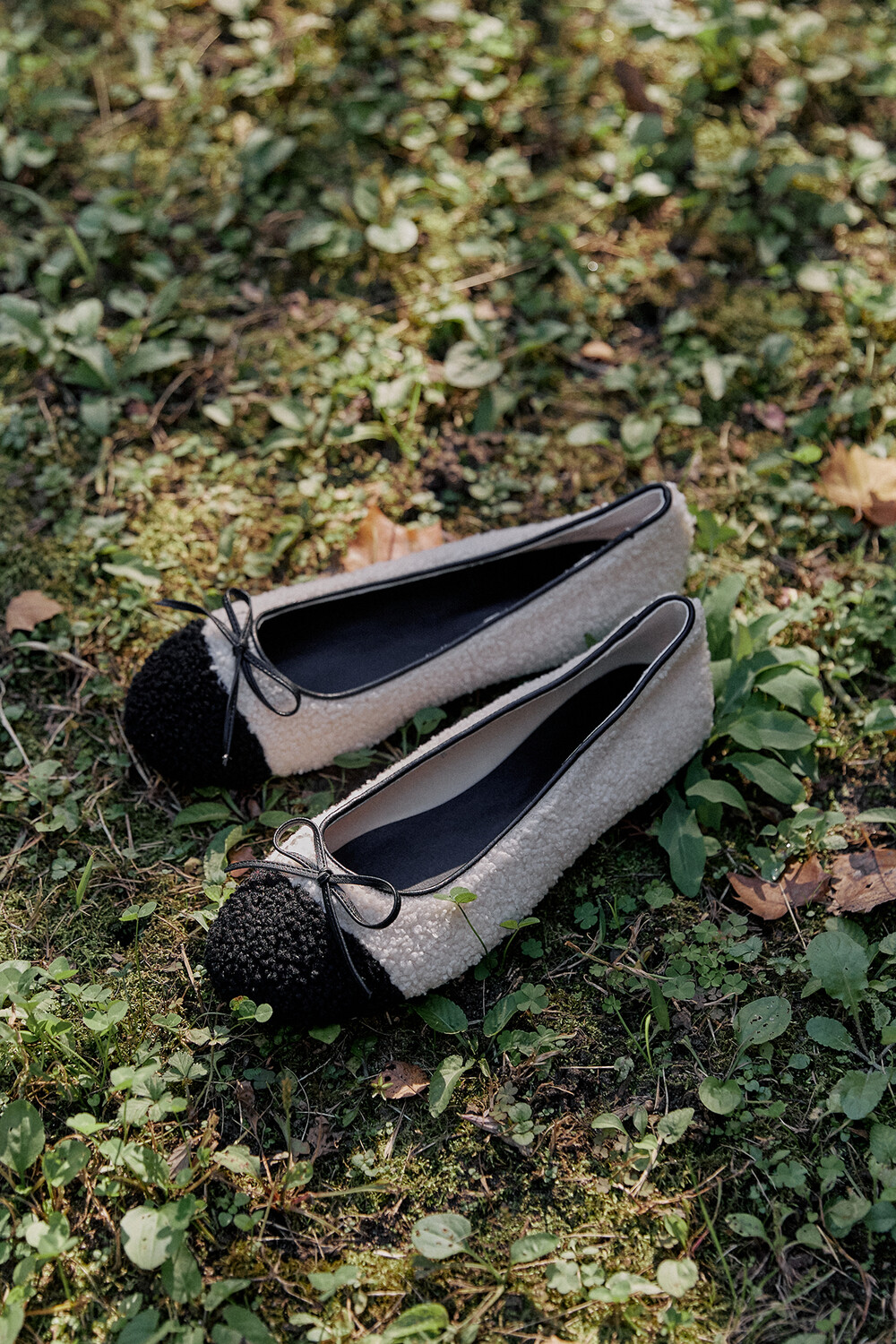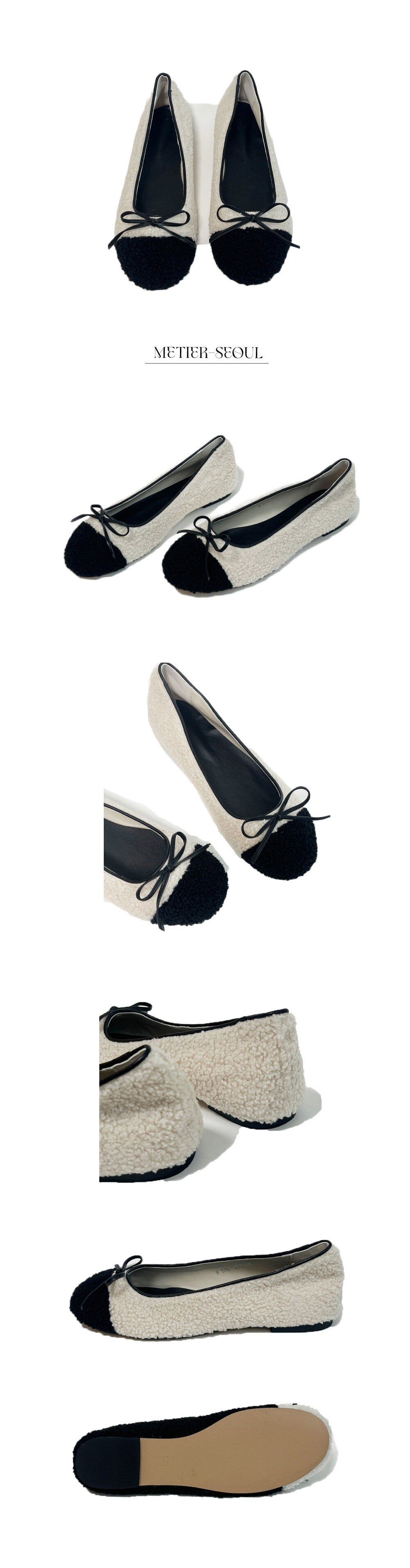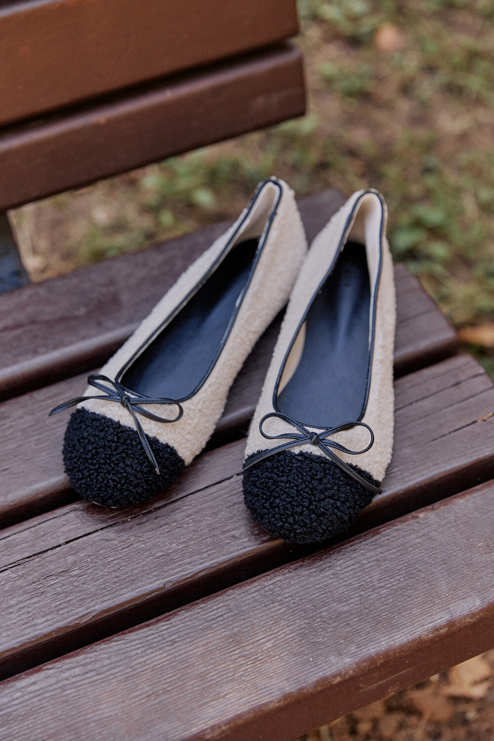 c576 wave ribon faltshoes 웨이브 리본 뽀글이 배색 플랫슈즈 - IV