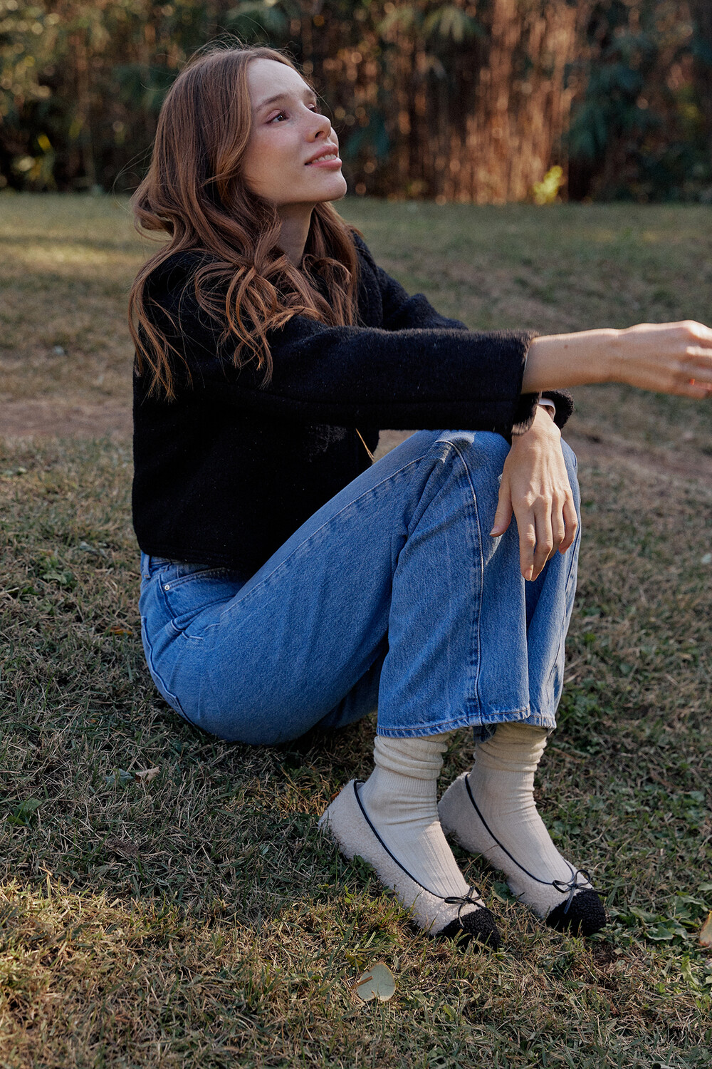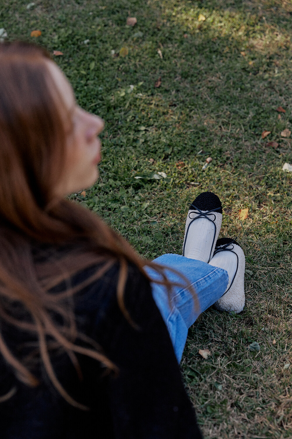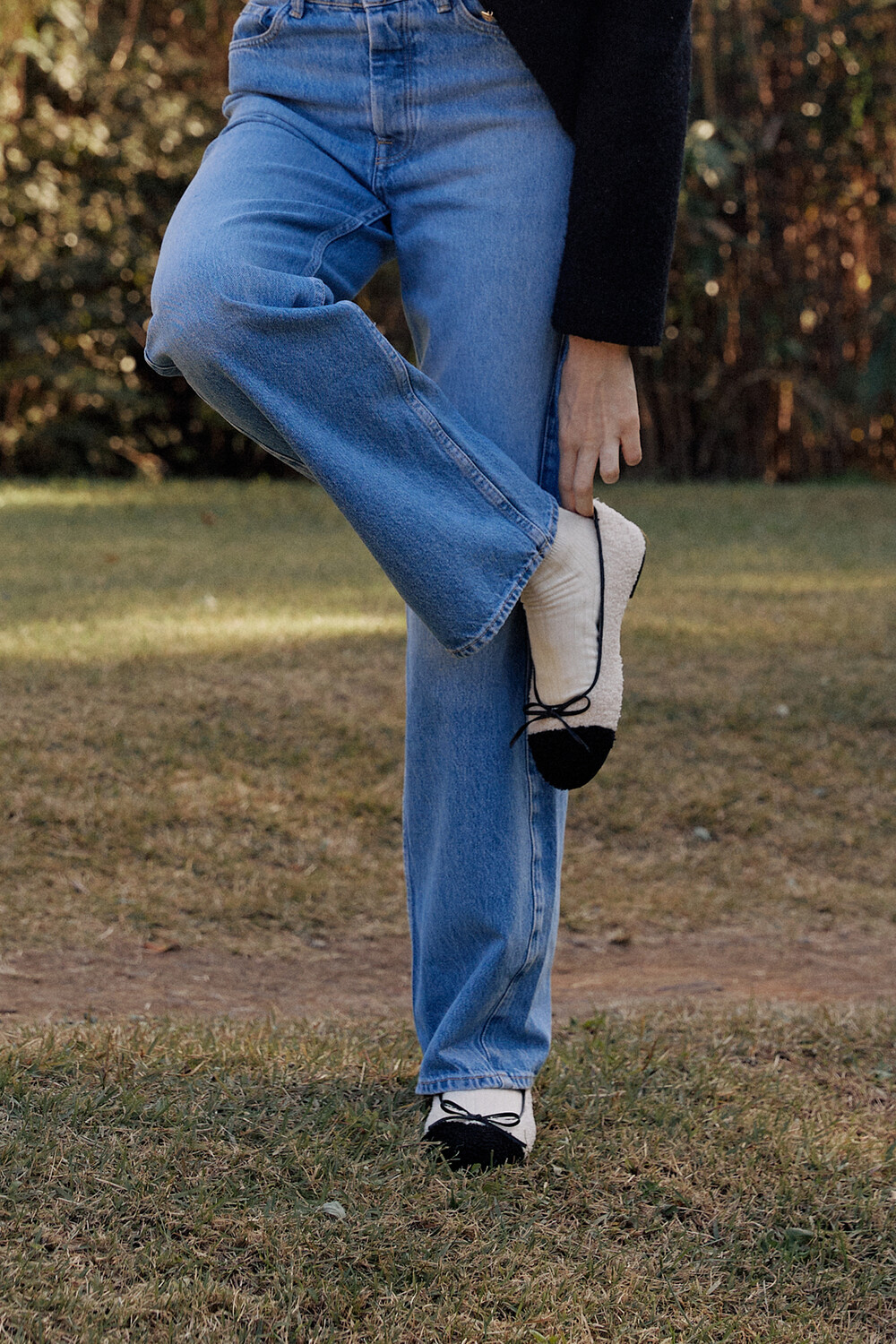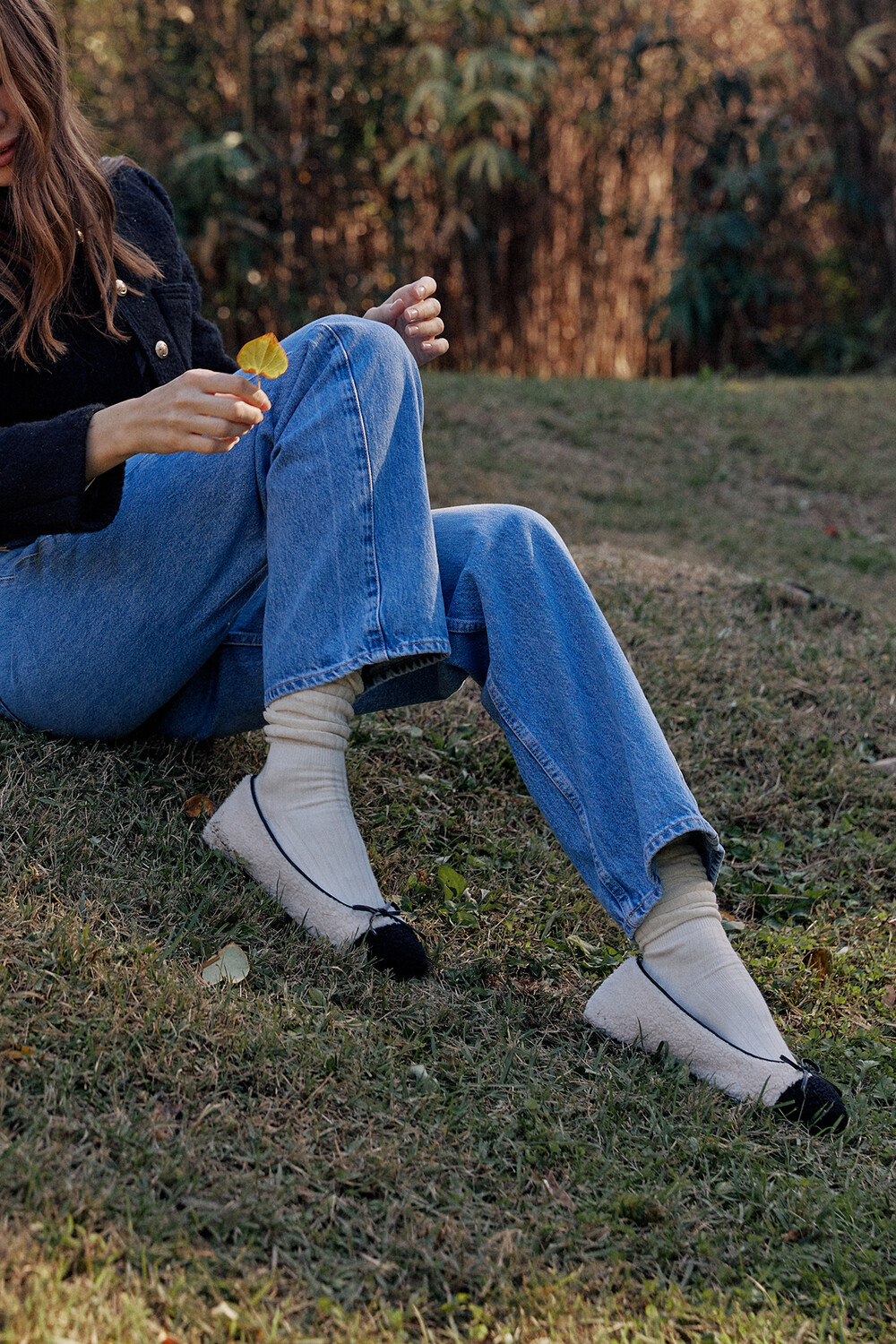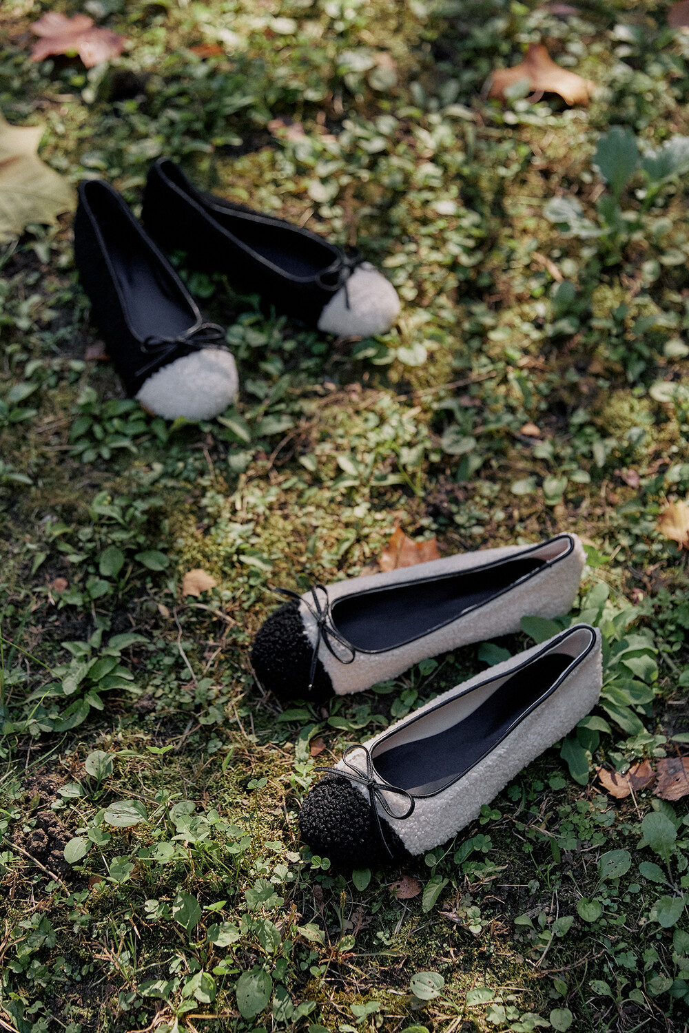 c576 wave ribon faltshoes 웨이브 리본 뽀글이 배색 플랫슈즈 - IV