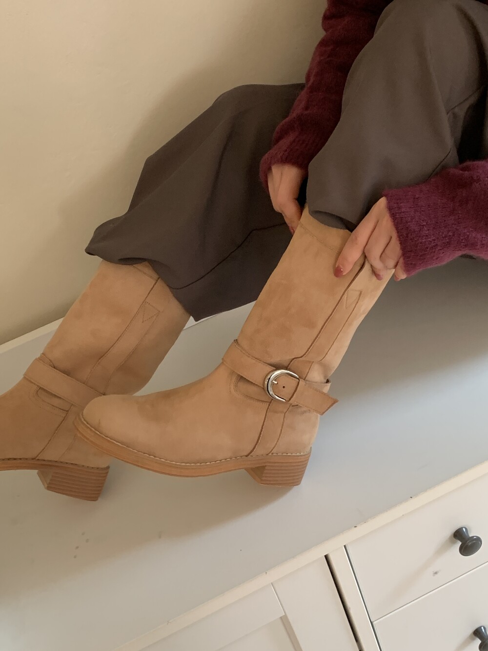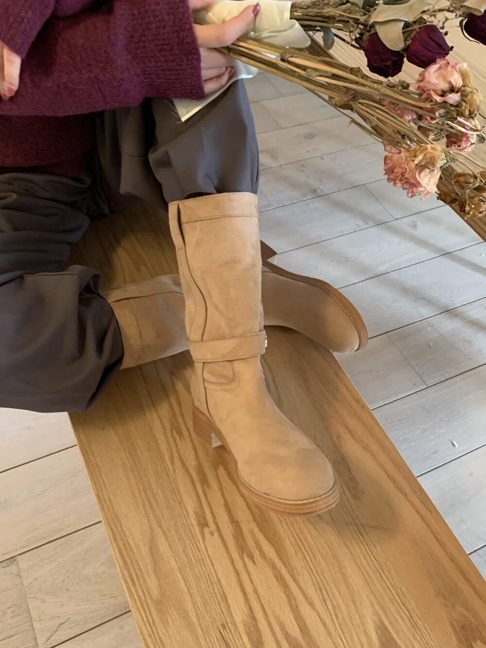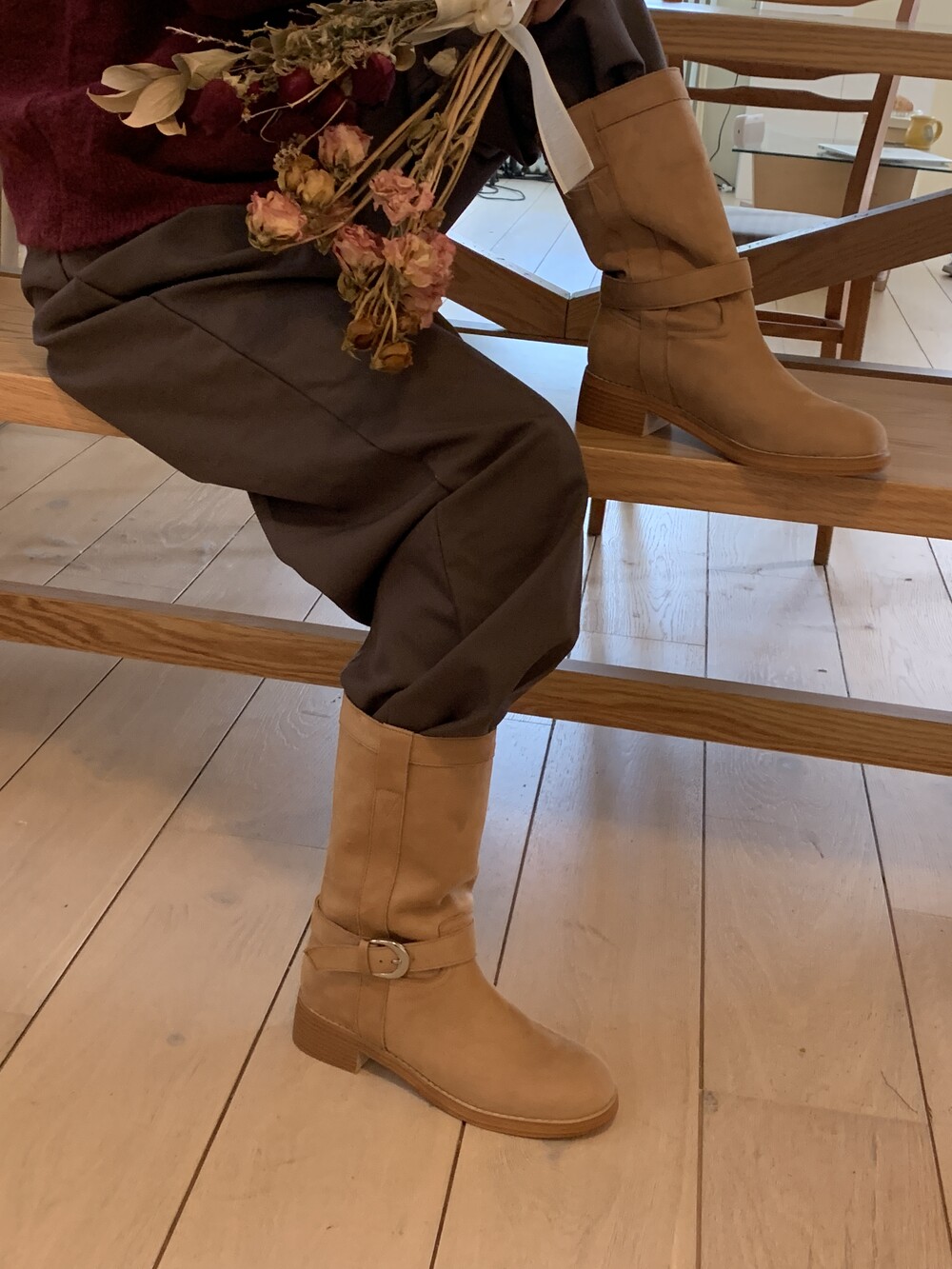 me004 베니 라운드토우 버클 미들부츠 beny round buckle 3way middle boots