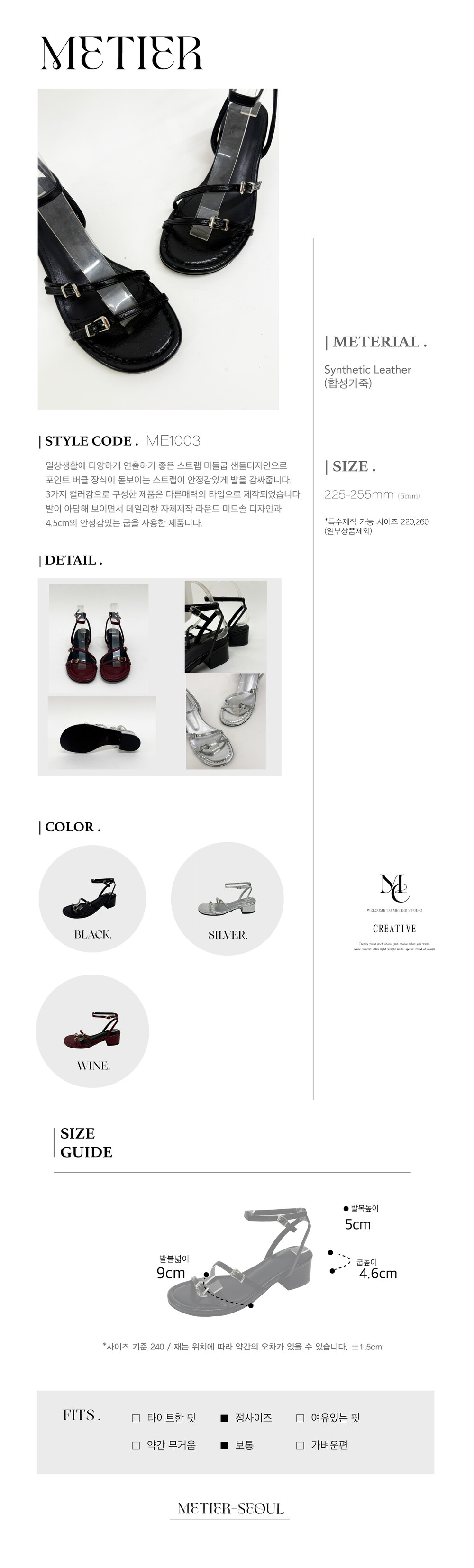 me1003 cremane triple strap middle sandle 크레마네 트리플버클 스트랩 미들힐 샌들_3color
