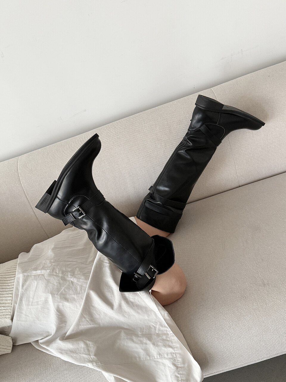 me1010 Janet triple-way buckle boots 자넷 트리플 버클 스웨이드 롱부츠_2color
