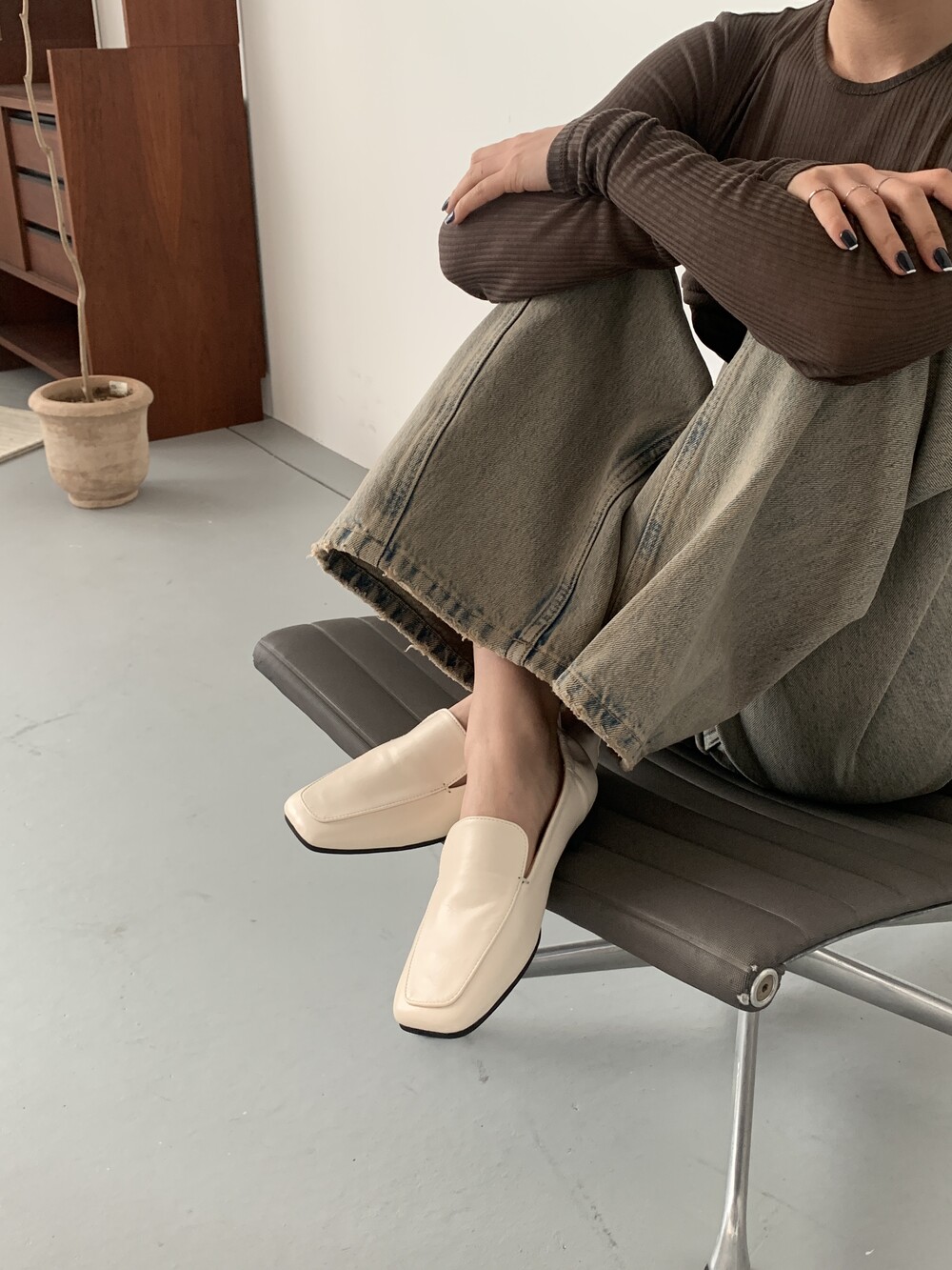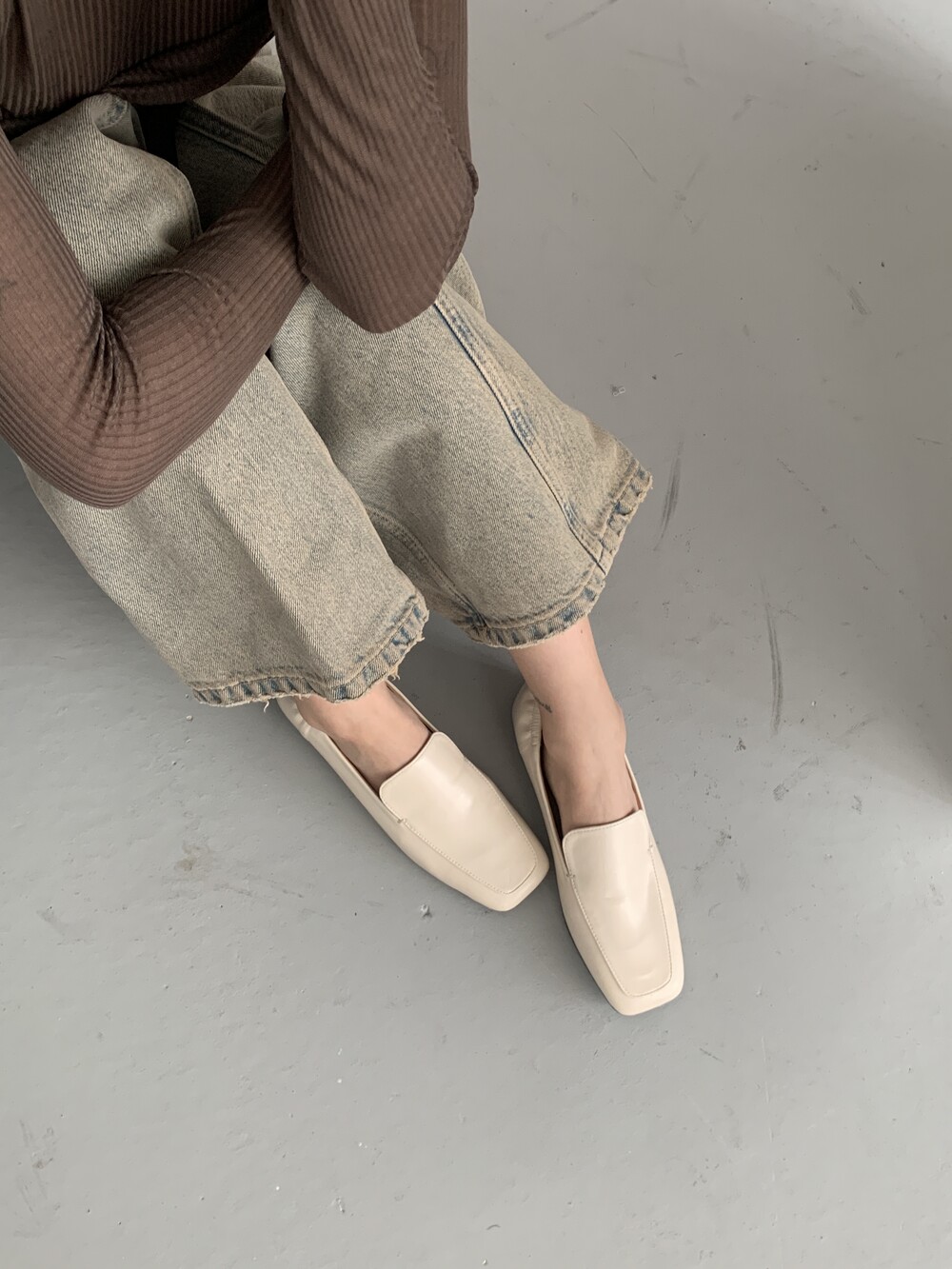 me2401 square stich mono loafer 스퀘어 스티치 모노 로퍼 - ivory