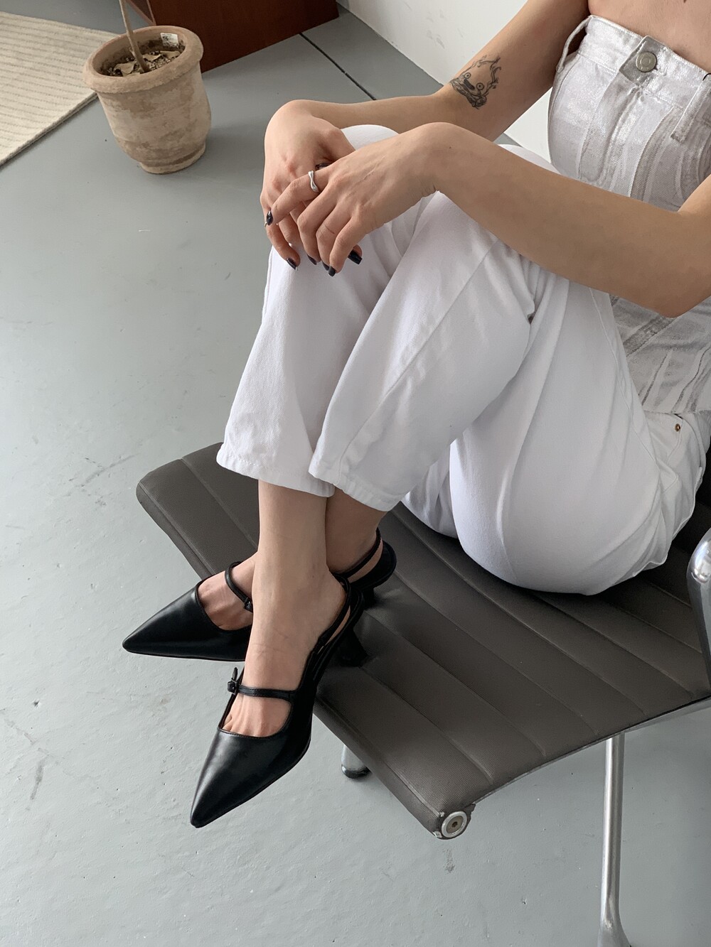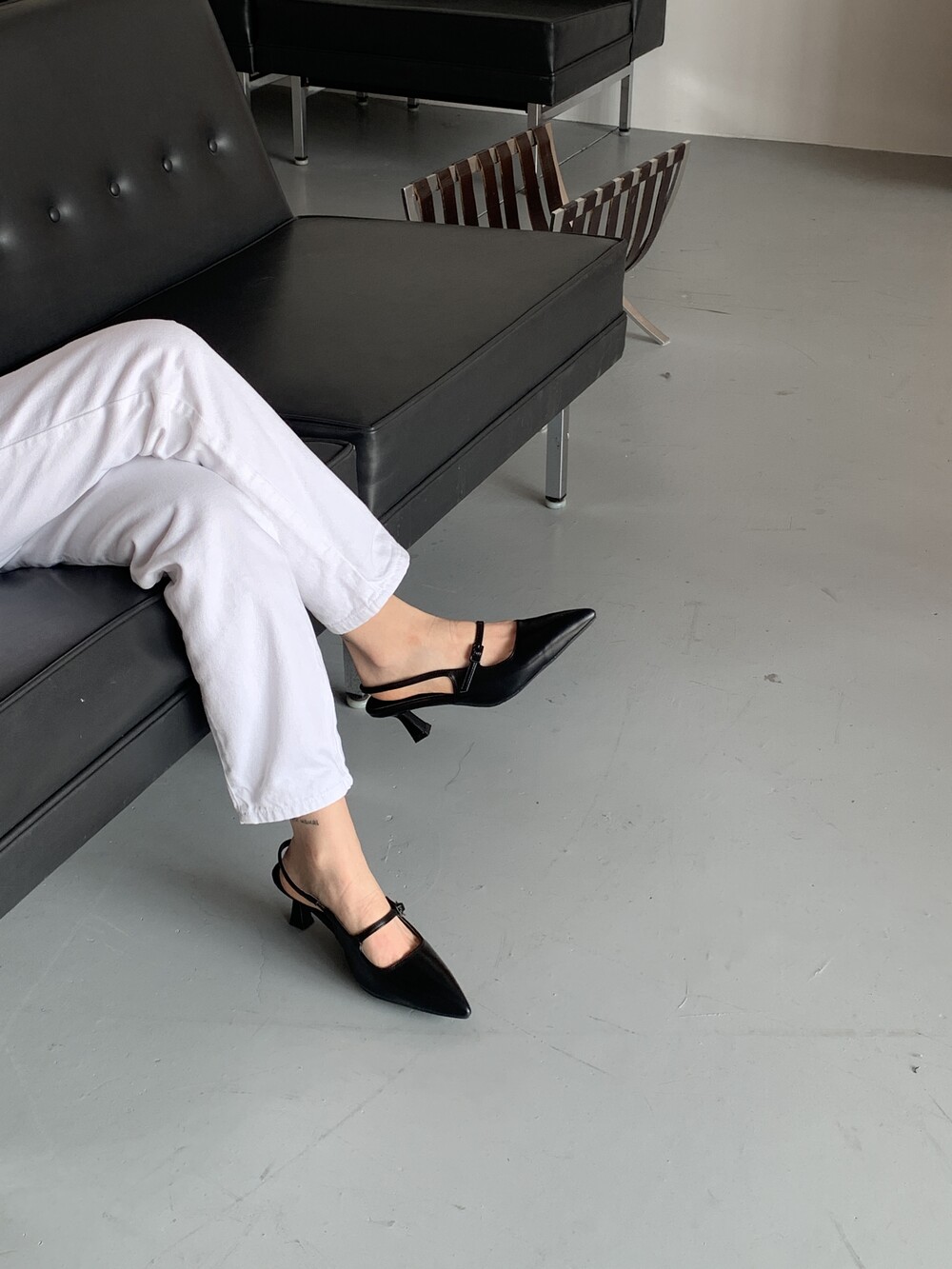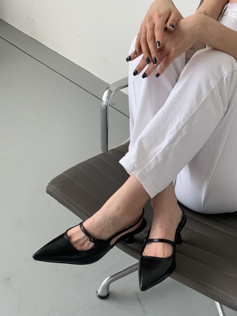 me2409 retro strap stiletto slingback pumps 레트로 스틸레토 슬링백 펌프스 - black