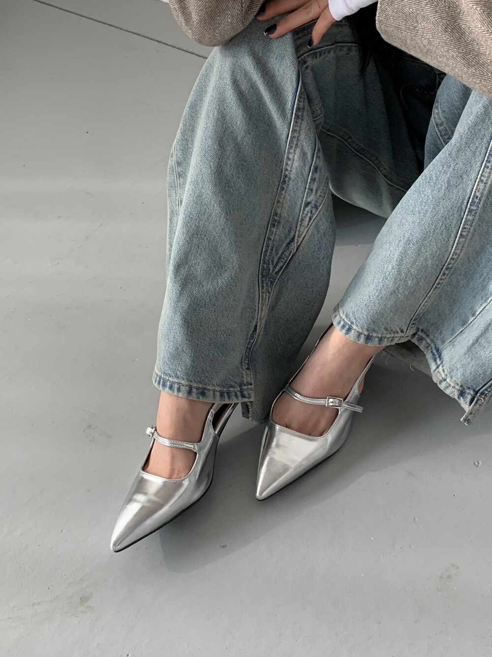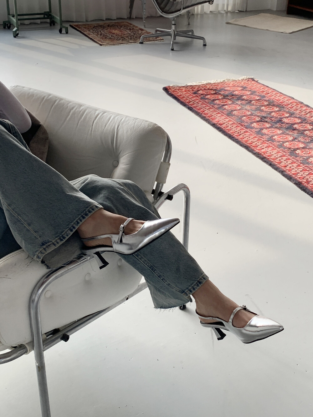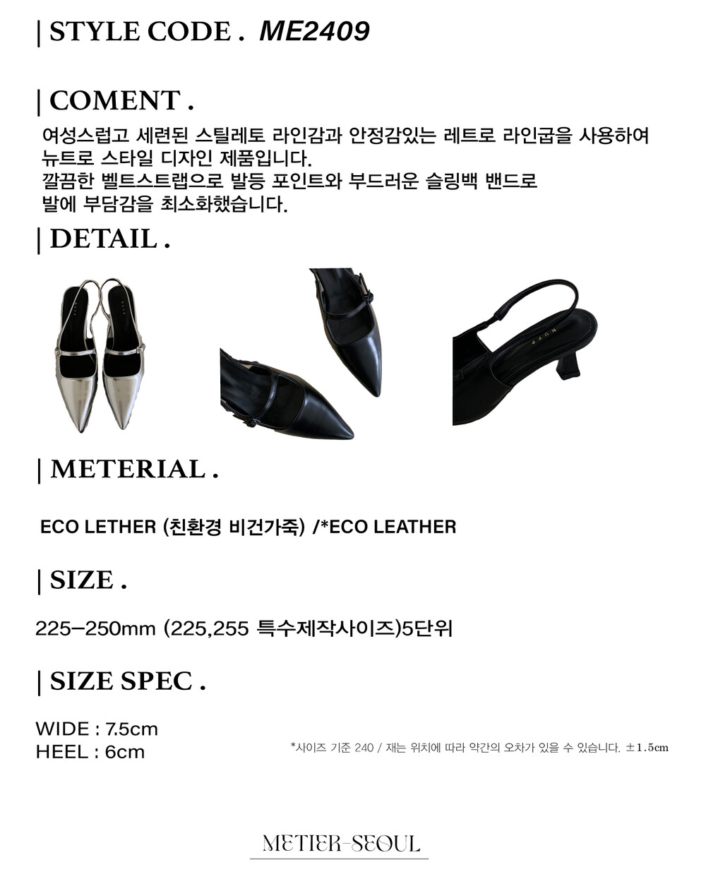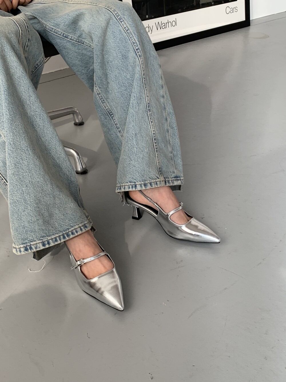 me2409 retro strap stiletto slingback pumps 레트로 스틸레토 슬링백 펌프스 - silver
