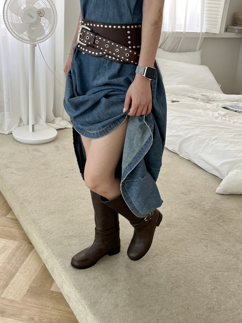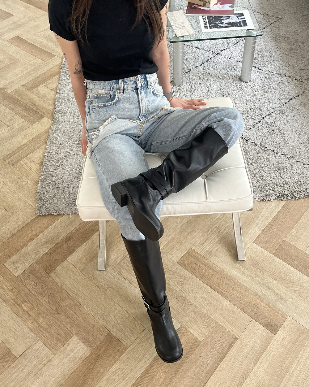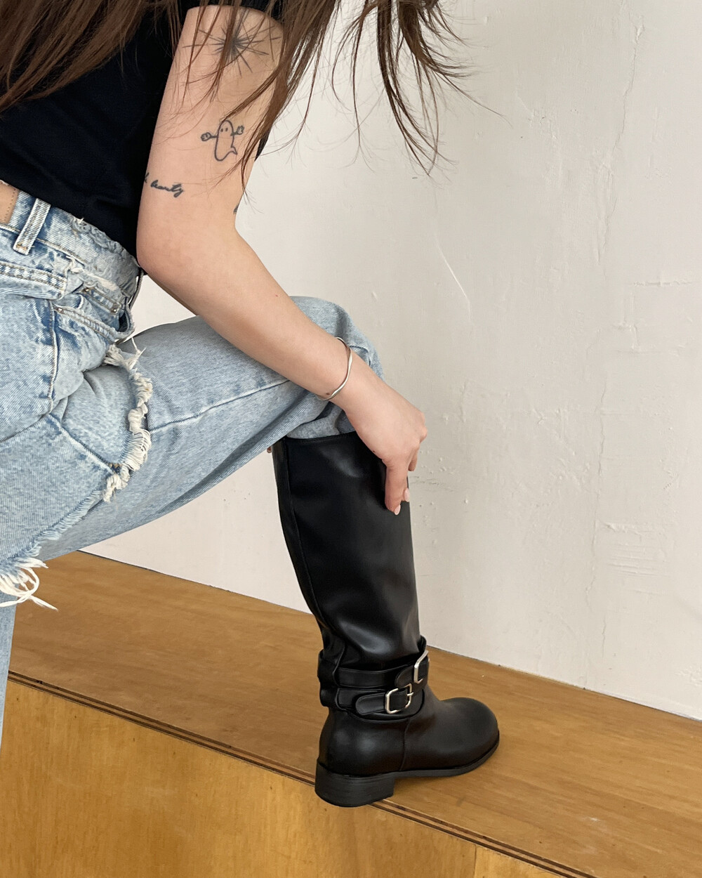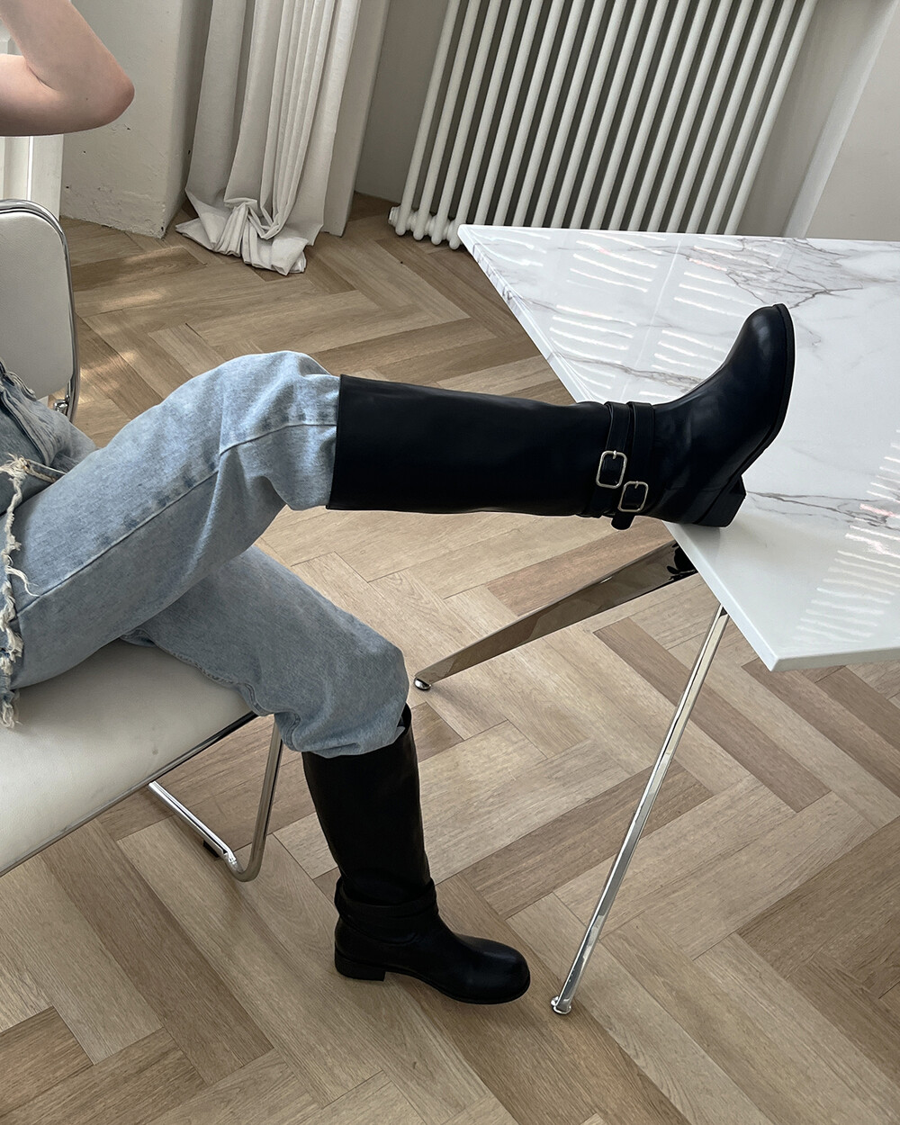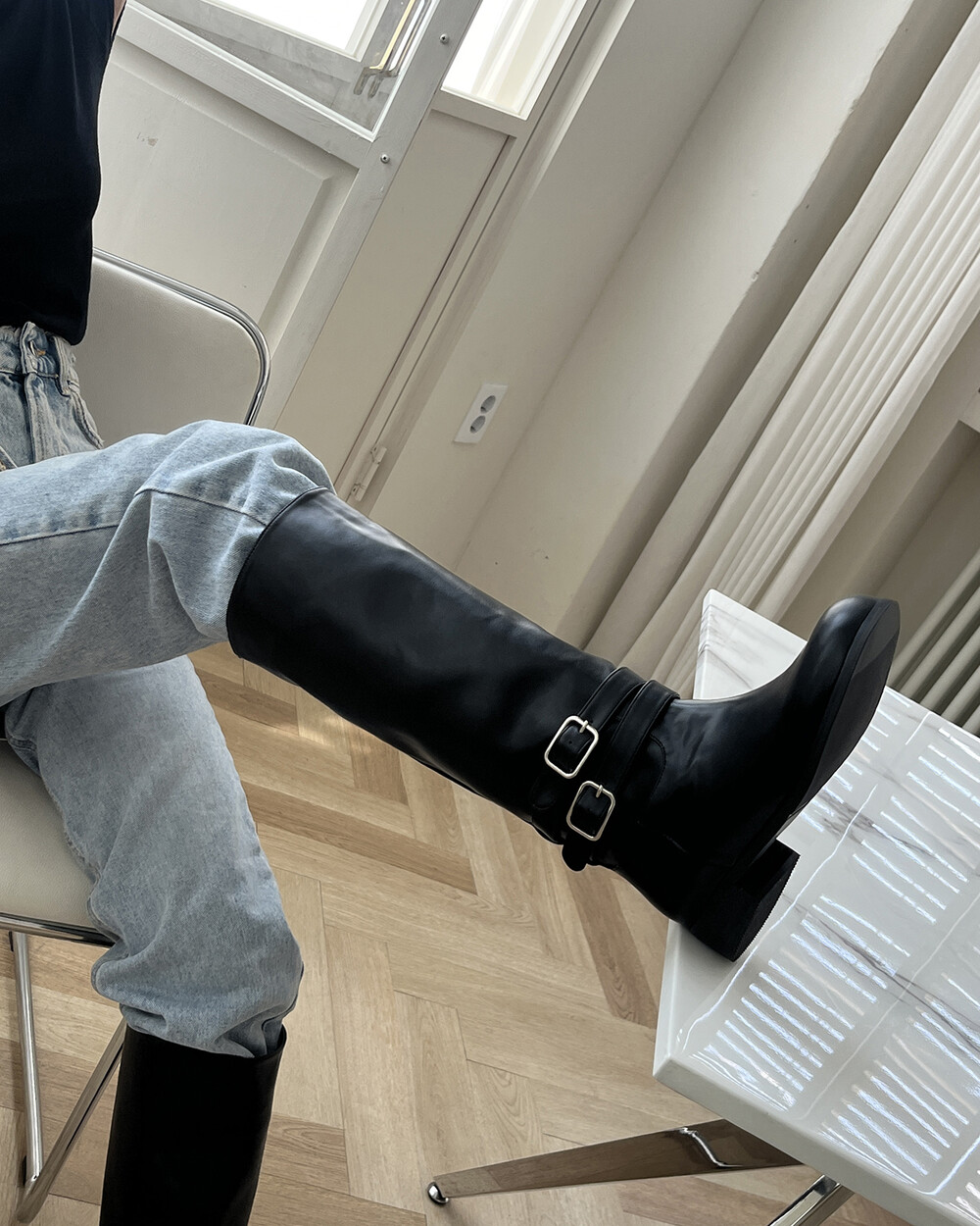 me2458 루아 라운드토 투버클 포인트 롱부츠 roundtoe buckle point longboots (2color)