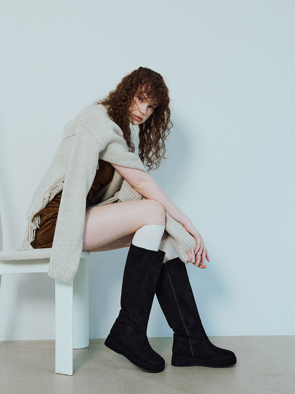me2477 mere flatform square toe longboots 스퀘어 플랫폼 스웨이드 롱부츠
