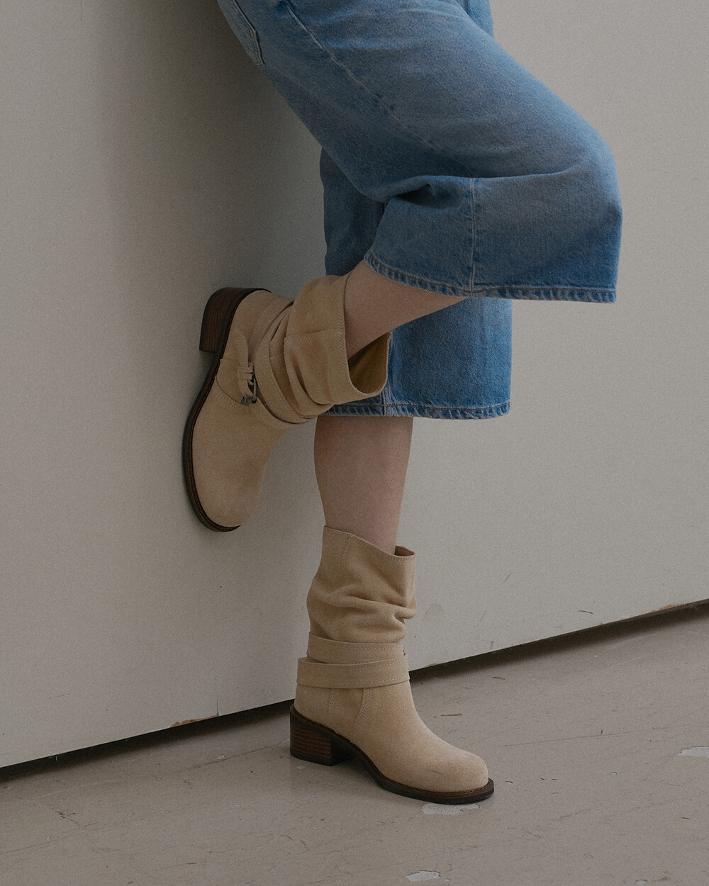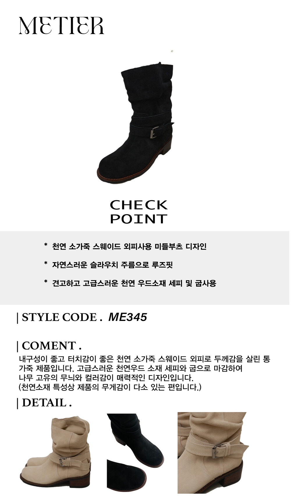 me345 천연 소가죽 스웨이드 슬라우치 미들부츠 slouchy cowleather suede middleboots (2color)