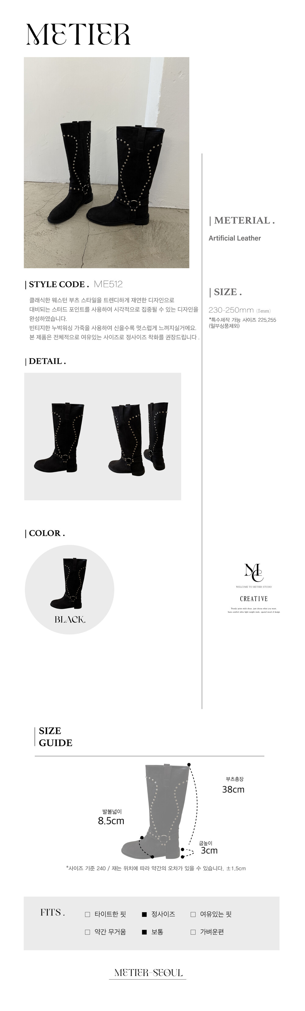 me512 Dane stud point western boots 데인 스터드 웨스턴 롱부츠