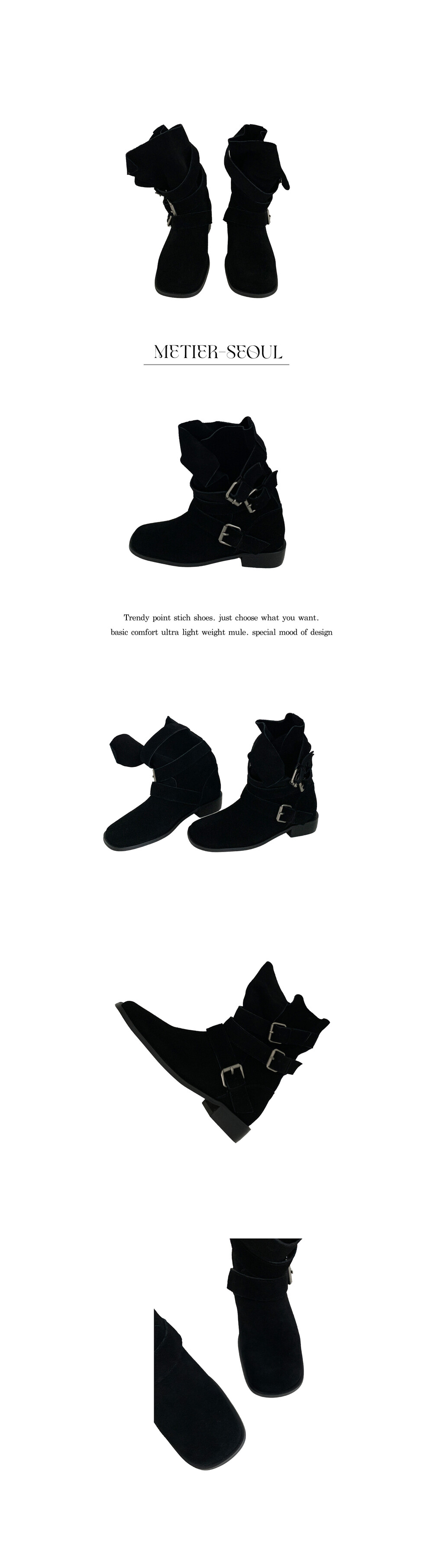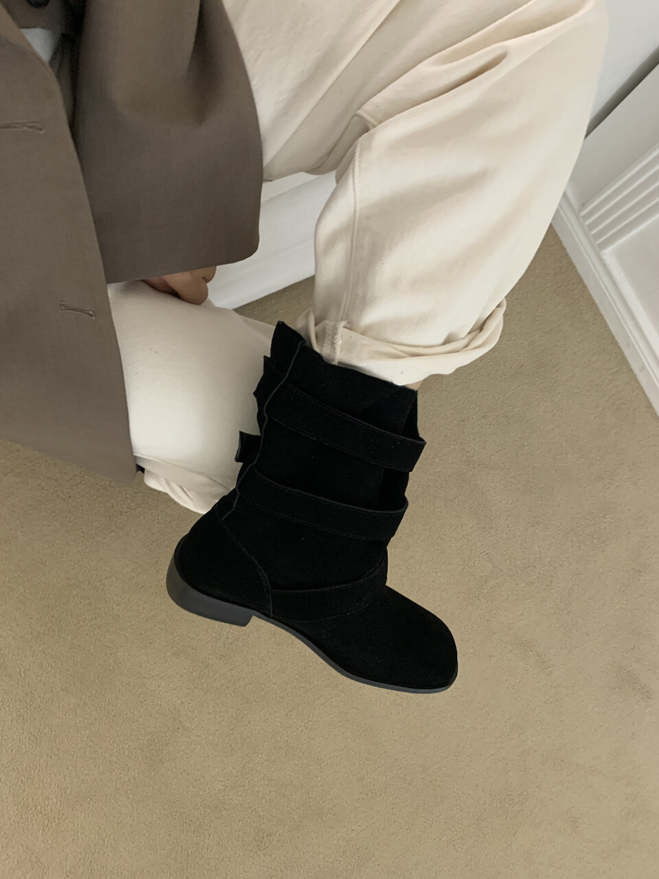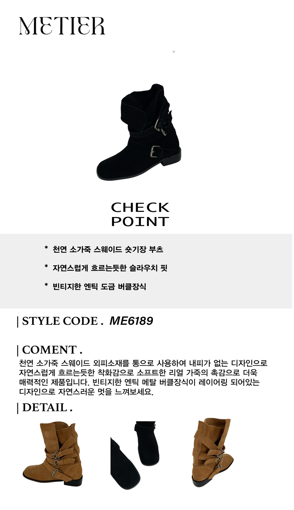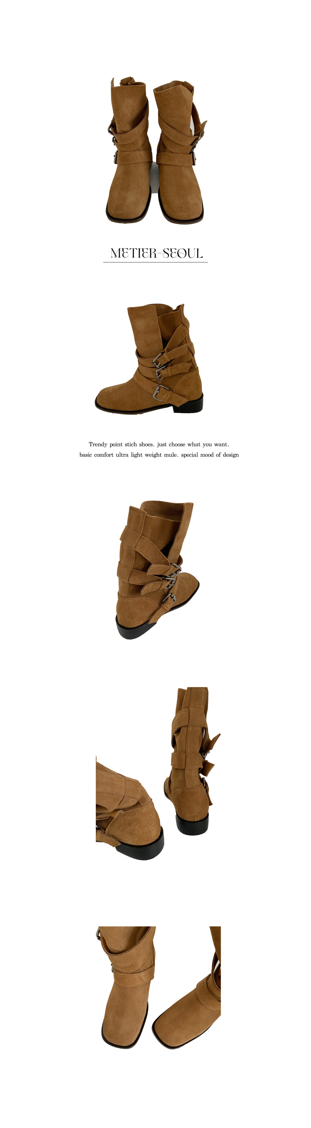 me6189 빈티지 레이어드 버클스트랩 미들부츠 vintage buckle strap middle boots