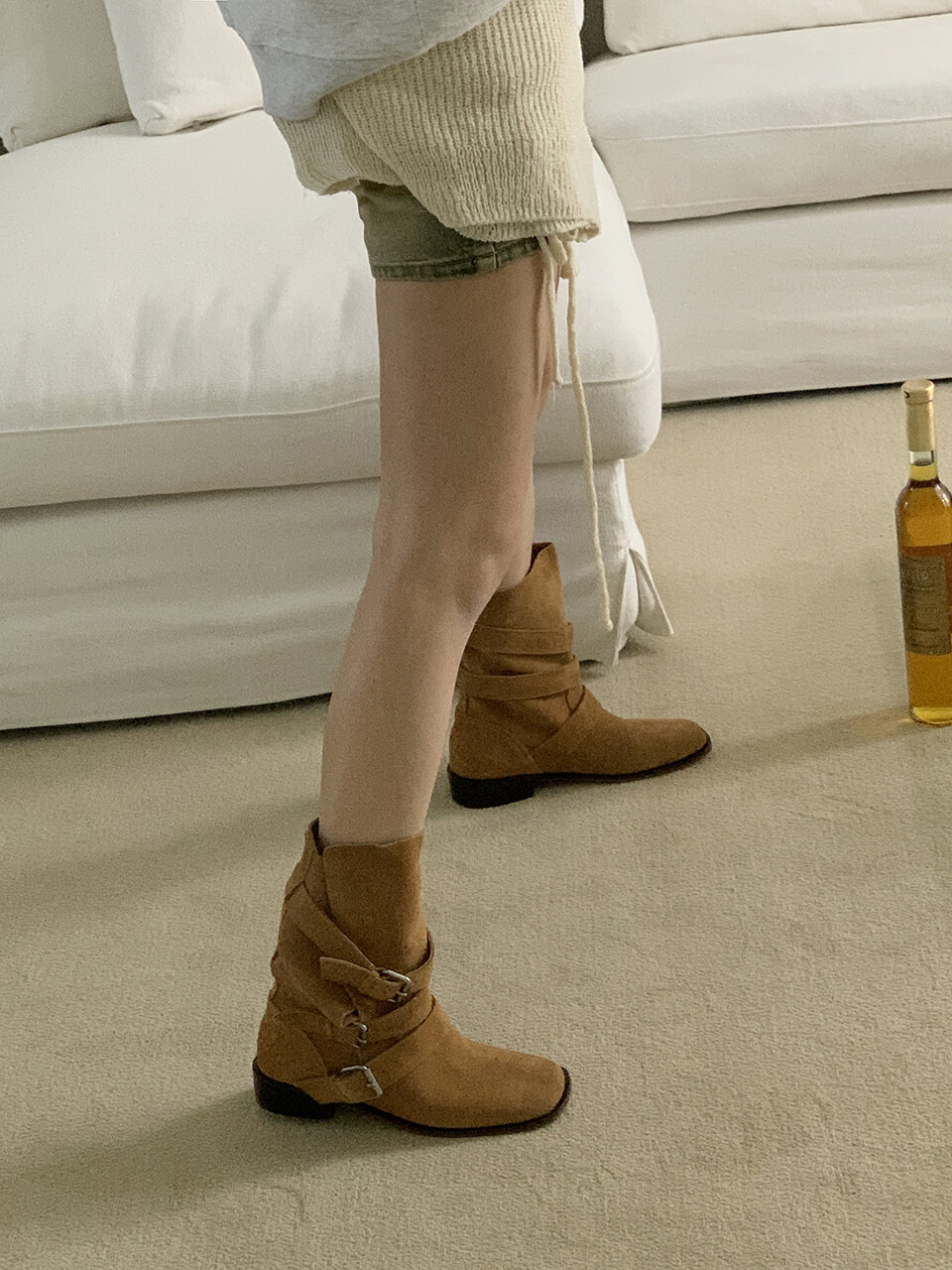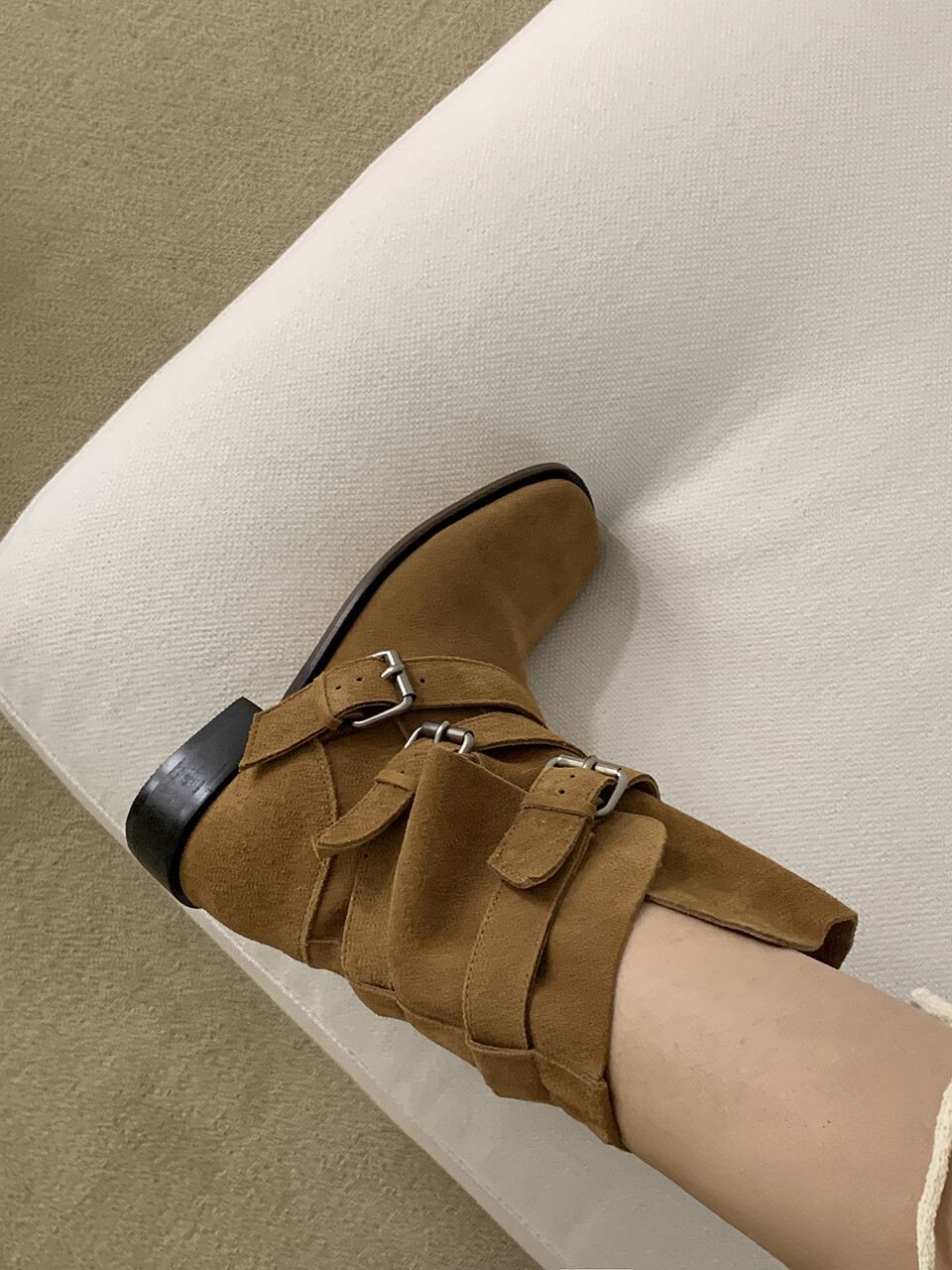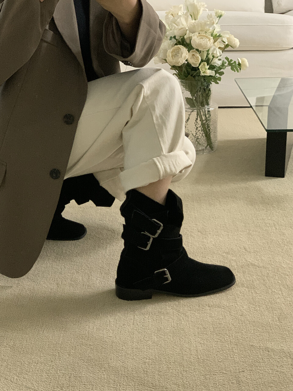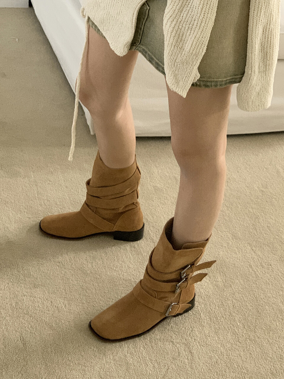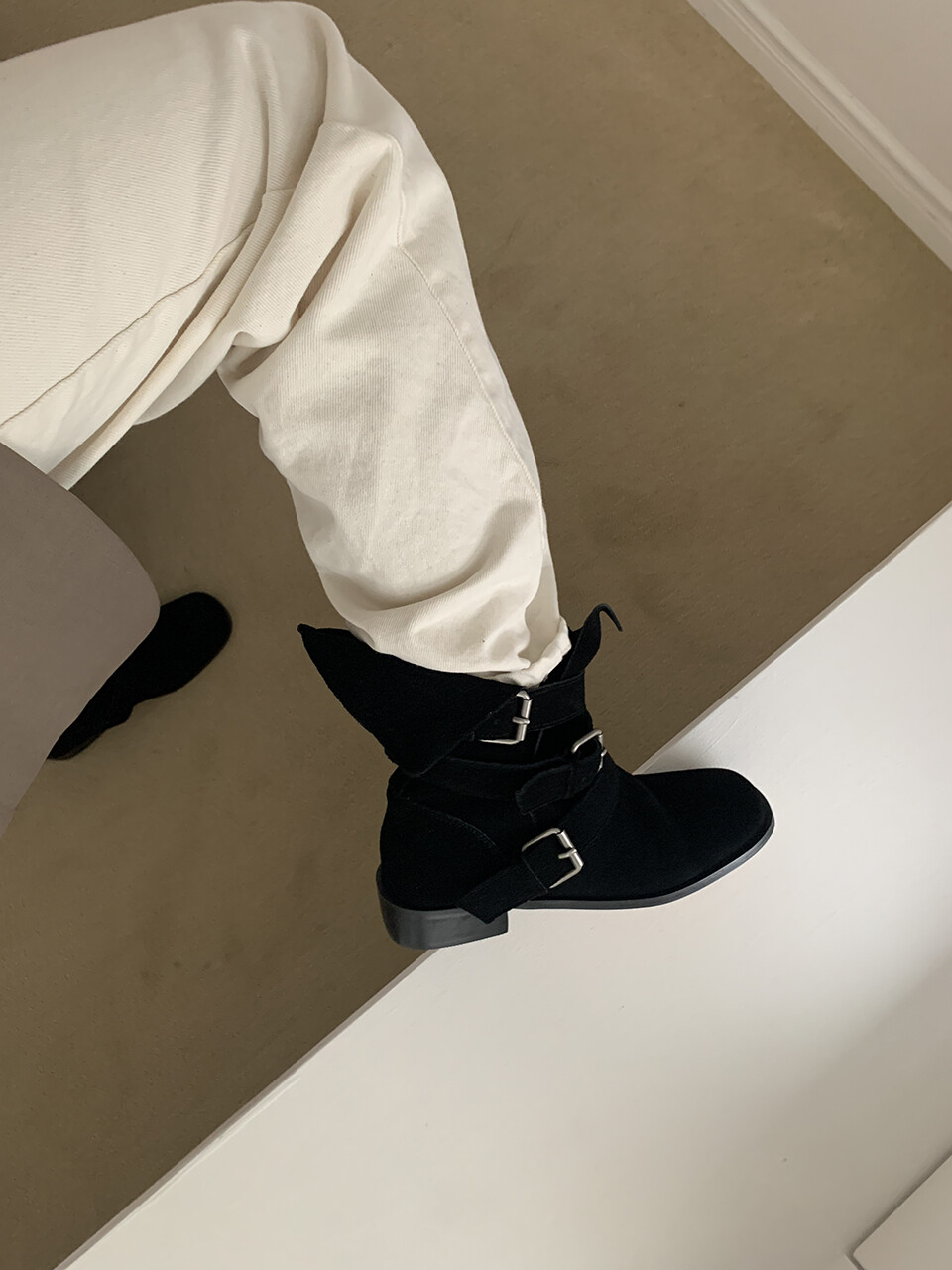 me6189 빈티지 레이어드 버클스트랩 미들부츠 vintage buckle strap middle boots