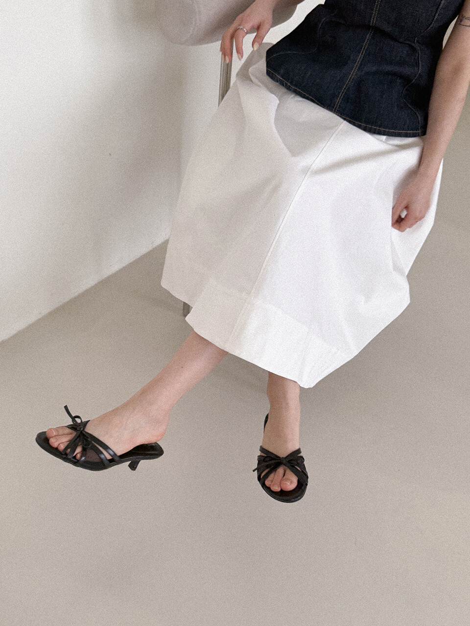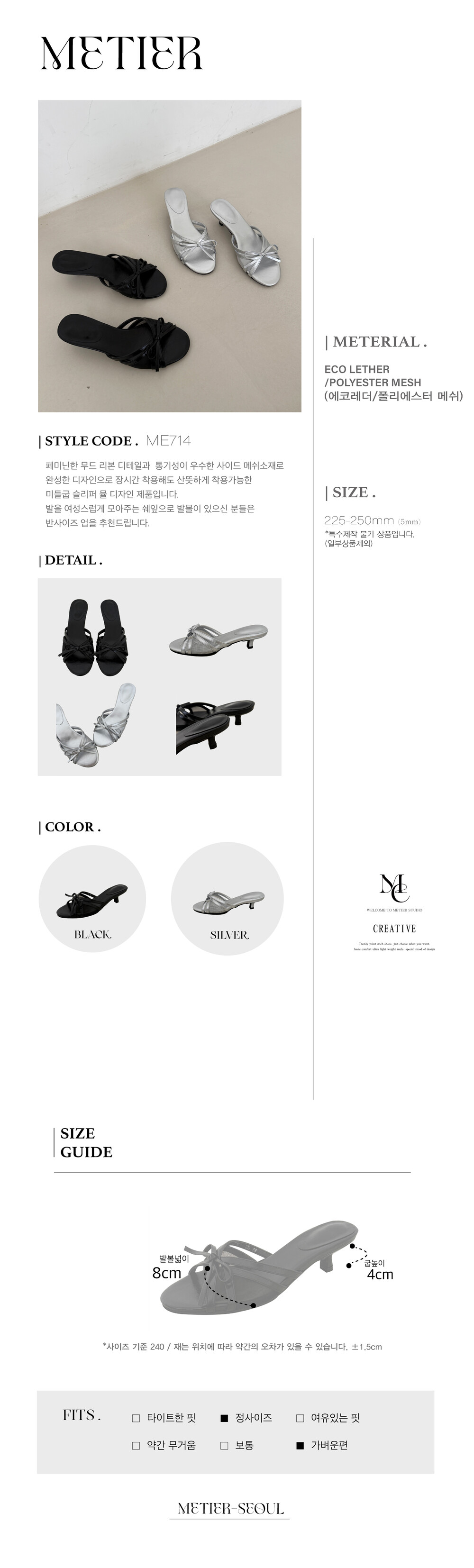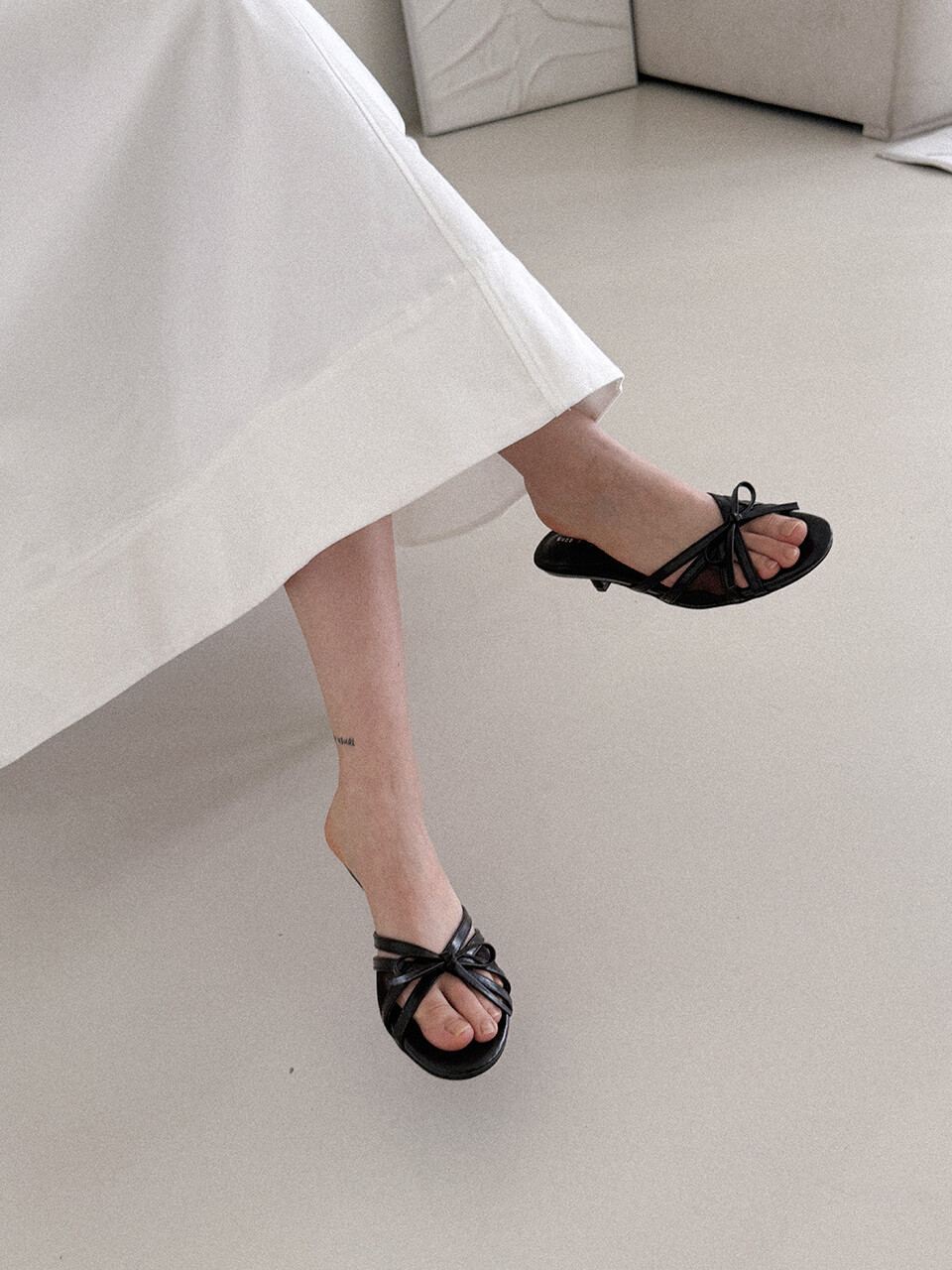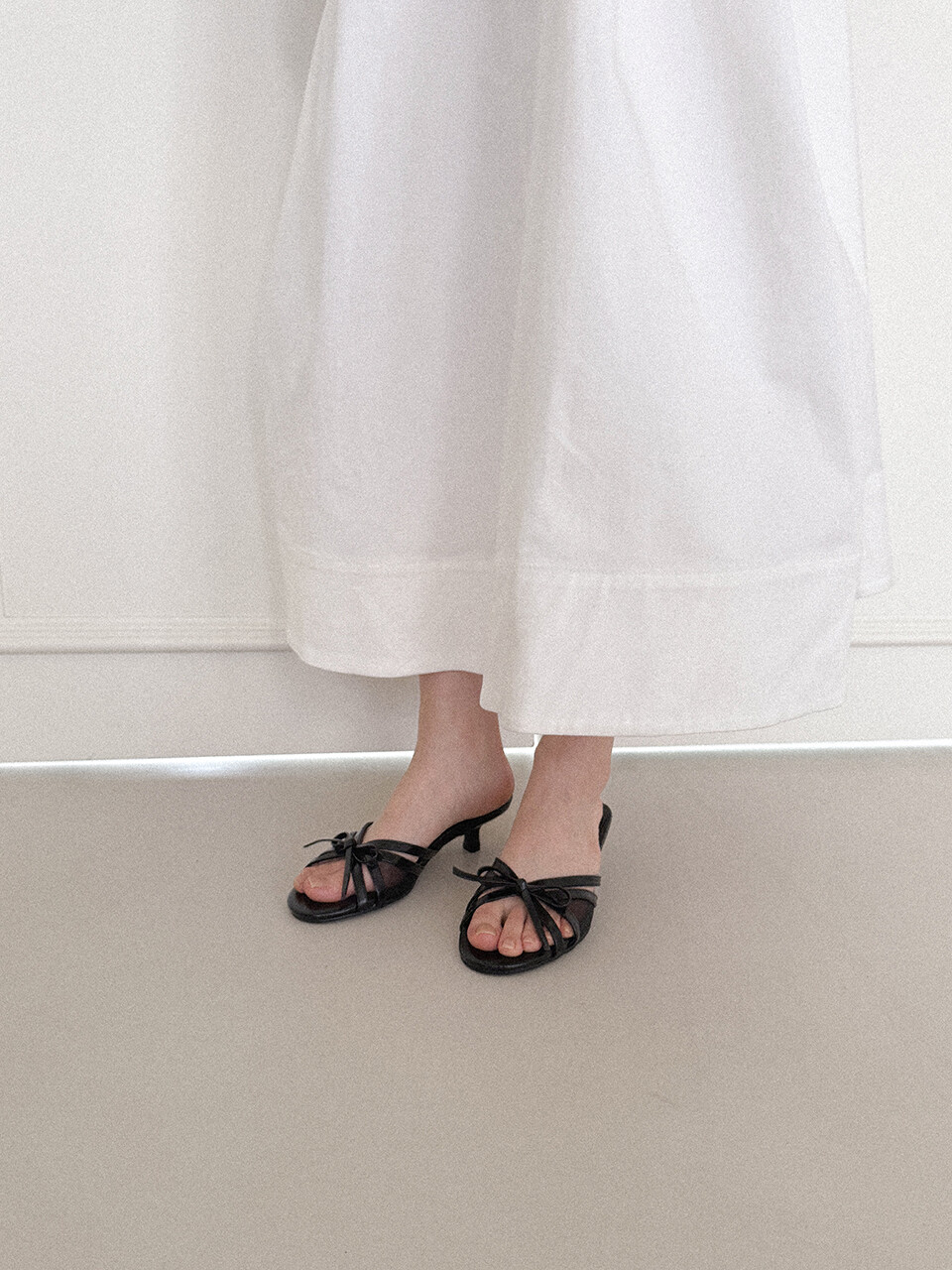me714 Peony Ribbon Mesh Mid Heel Mule Pumps 피오니 리본 미들굽 뮬펌프스 2color